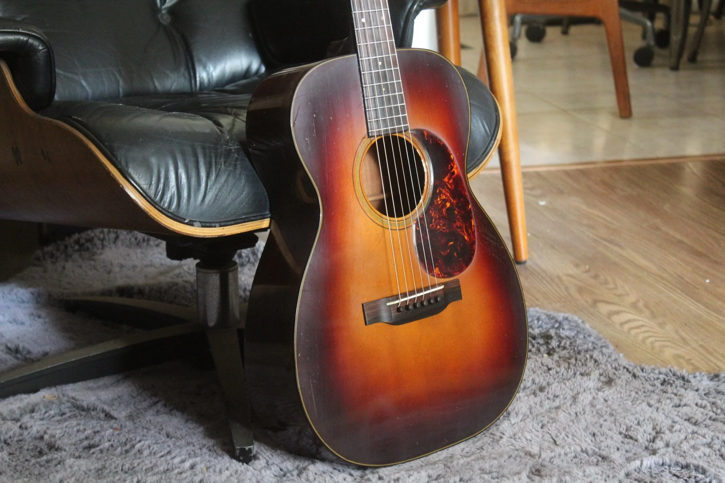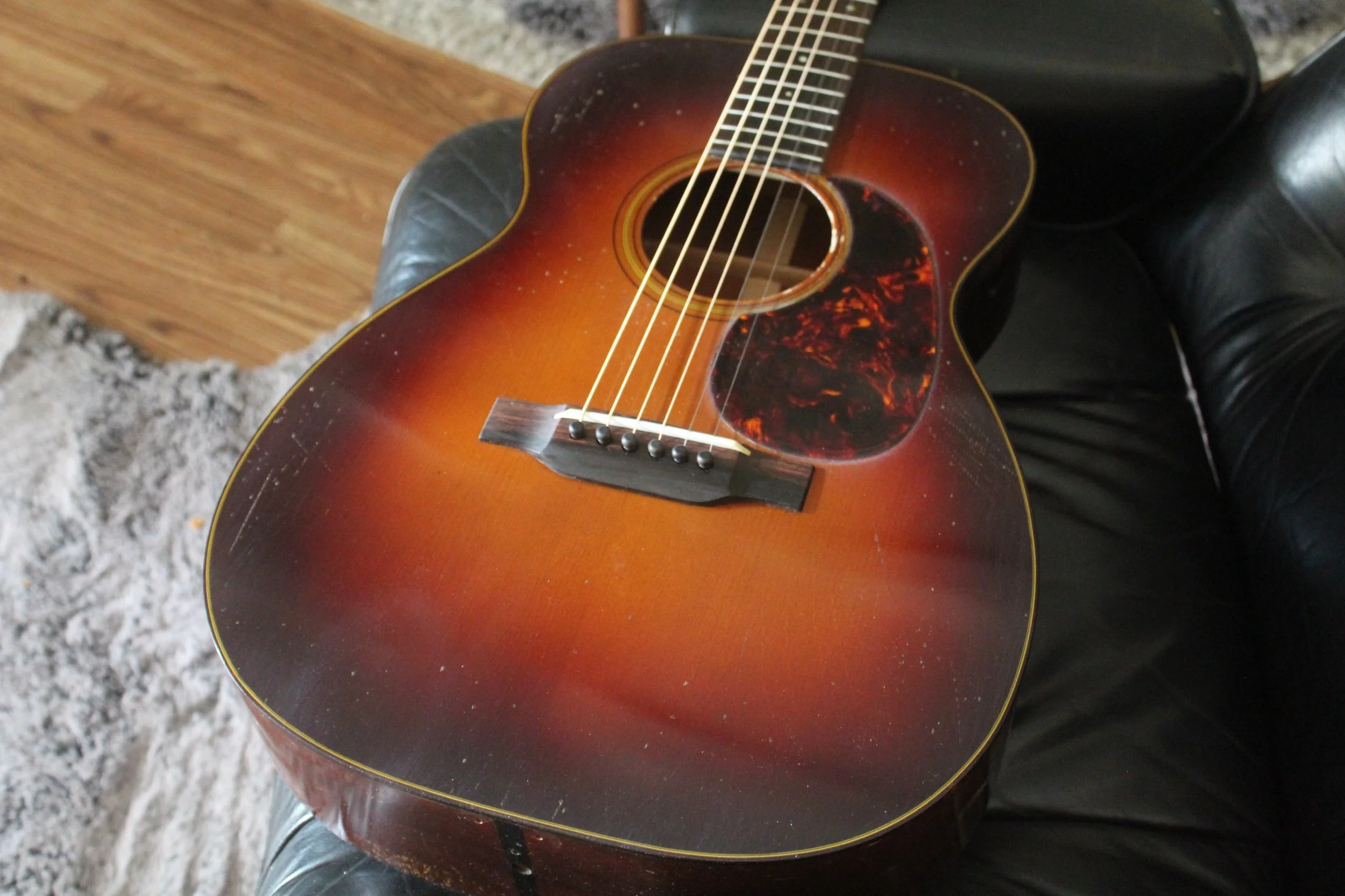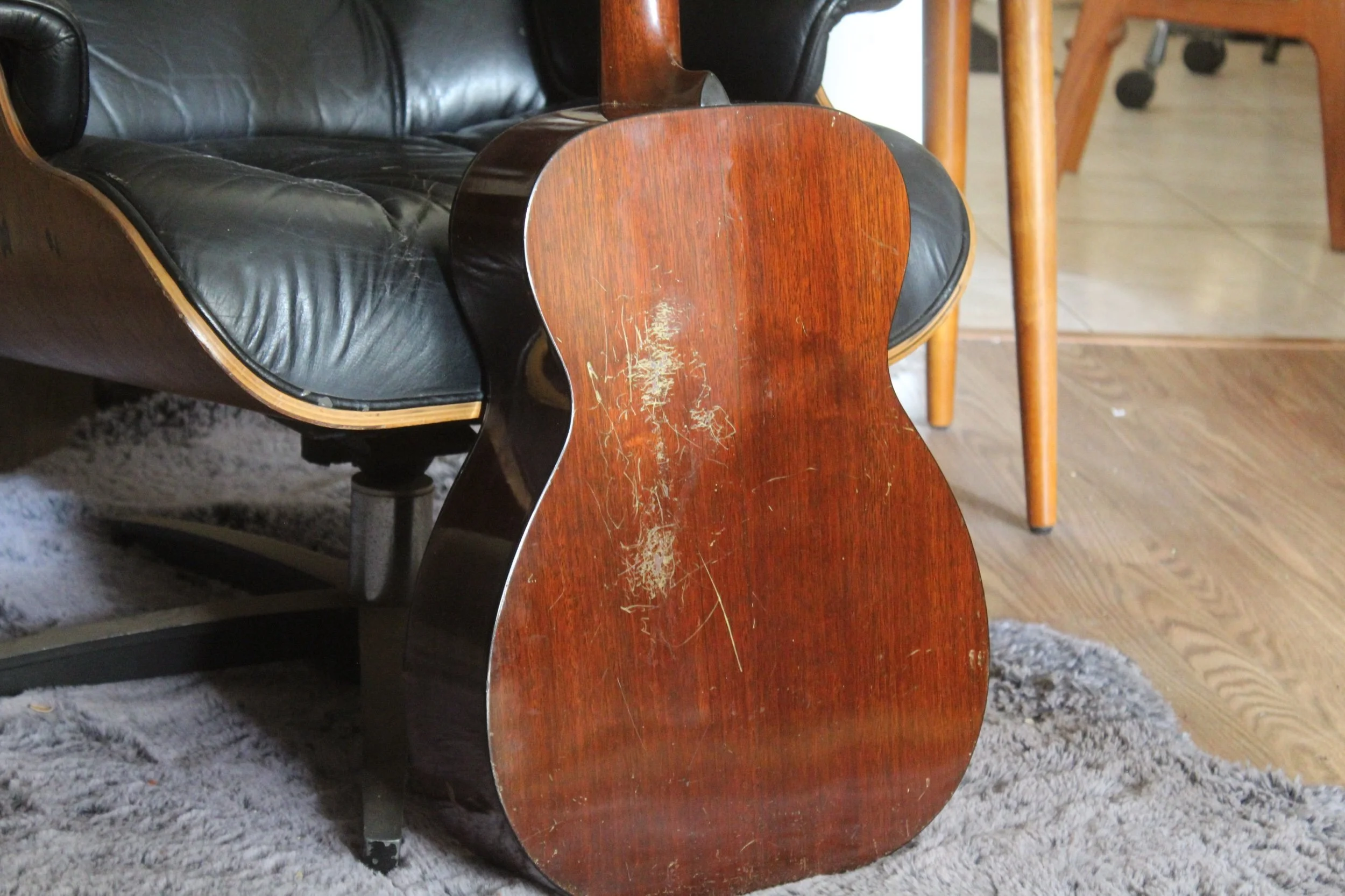 Here we have great 1935 Martin R-18 archtop that has been converted to a style 18 The conversion was done by Joel Whitehead. The guitar tuners are not origanal to the guitar but our old Grover tuners. dot inlays are original.
