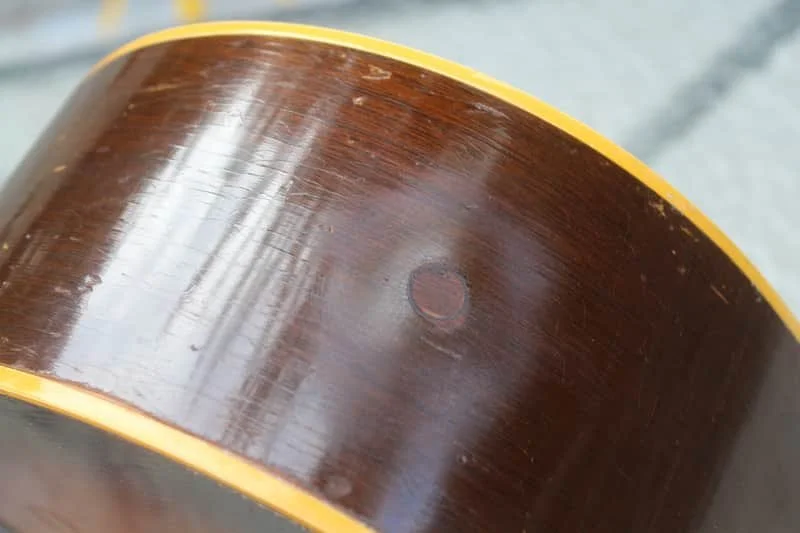 Things that were done to this instrument guitar had an old pick up installed in it with holes in the top. Those holes were filled and color match to the top as you'll notice in the photos that I've provided guitar appears to have also had a input jack in it at one point that has been filled and colored. The guitar has had its original top re Voiced, X braced, with 5/16 scalloped forward shifted bracing pattern with 5/16 scalloped tone bars, and appropriately sized head, brace and finger braces along with a small maple Bridge plate. The back has had all bracing re-glued and center maple reinforcement spine has been added similar to how an original LG-2 two would be constructed. The guitar has also had a complete re fret along with a new bone nut and saddle. The guitar still does obtain its original tuners that have had new buttons installed. The guitar still dose obtained its original bridge that has been re glued, serial number stamped on the head block along with all original finish. Guitar has had a neck, reset recur, correcting the geometry of this instrument. Geometry of the instrument is spot on now guitar plays and sound great. This conversion Definitely made a miraculous change to this guitar. The guitar does have lots of little nicks chips, dings dents, and superficial blemishes all over it as you will also notice in the photos that I have provided the guitar comes with a aftermarket case please feel free to ask any other questions you might have.