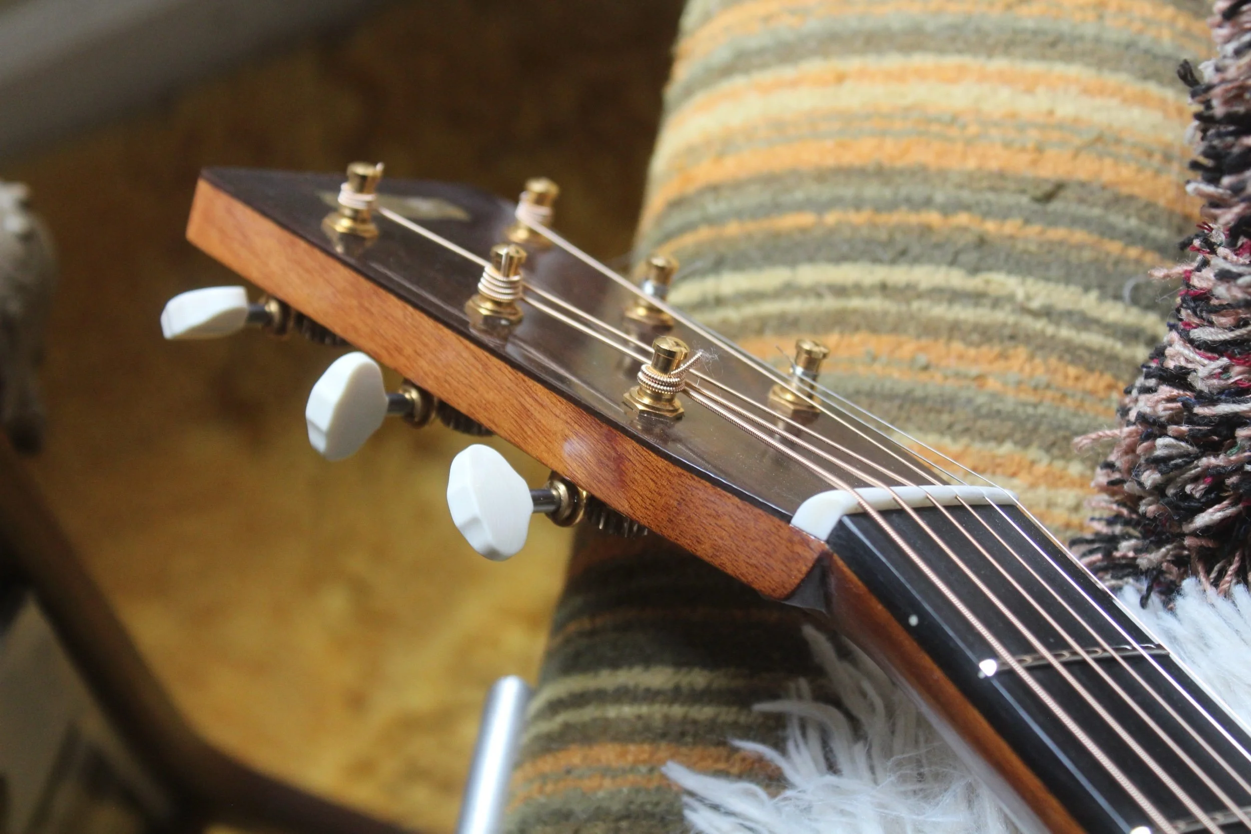 .Bone nut and bone saddle, with nitrocellulose lacquer aged, finish and T bar steel non adjustable truss rod